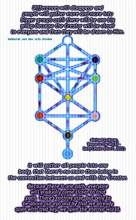 |||- Rav Michael Laitman, ‘Peace in the World‘ / Daily Kabbalah Lesson (Jun. 5 & Nov. 4, 7, 2022). Retrieved from kabbalahmedia.info/
