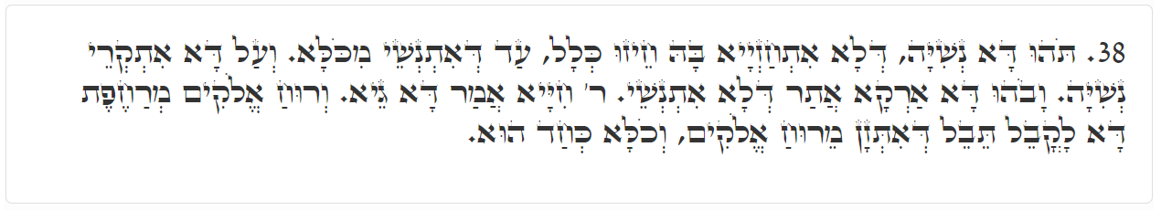 “Formlessness” is the earth called Neshiyah (oblivion). IT IS SO CALLED BECAUSE it has no appearance so that it is completely forgotten. It is therefore called oblivion. “Void” is Arka (ground), a place that cannot be forgotten. Rabbi Chiya DISAGREES AND says, “this earth called Gey (valley) IS VOID, NOT ARKA (GROUND).” And the words, “a wind (also: ‘spirit’) of Elohim hovers,” allude to the EARTH CALLED Tevel (world), which feeds from the spirit of Elohim, NAMELY FROM THE SPIRIT OF BINAH CALLED ELOHIM. They are all parts of the same level.