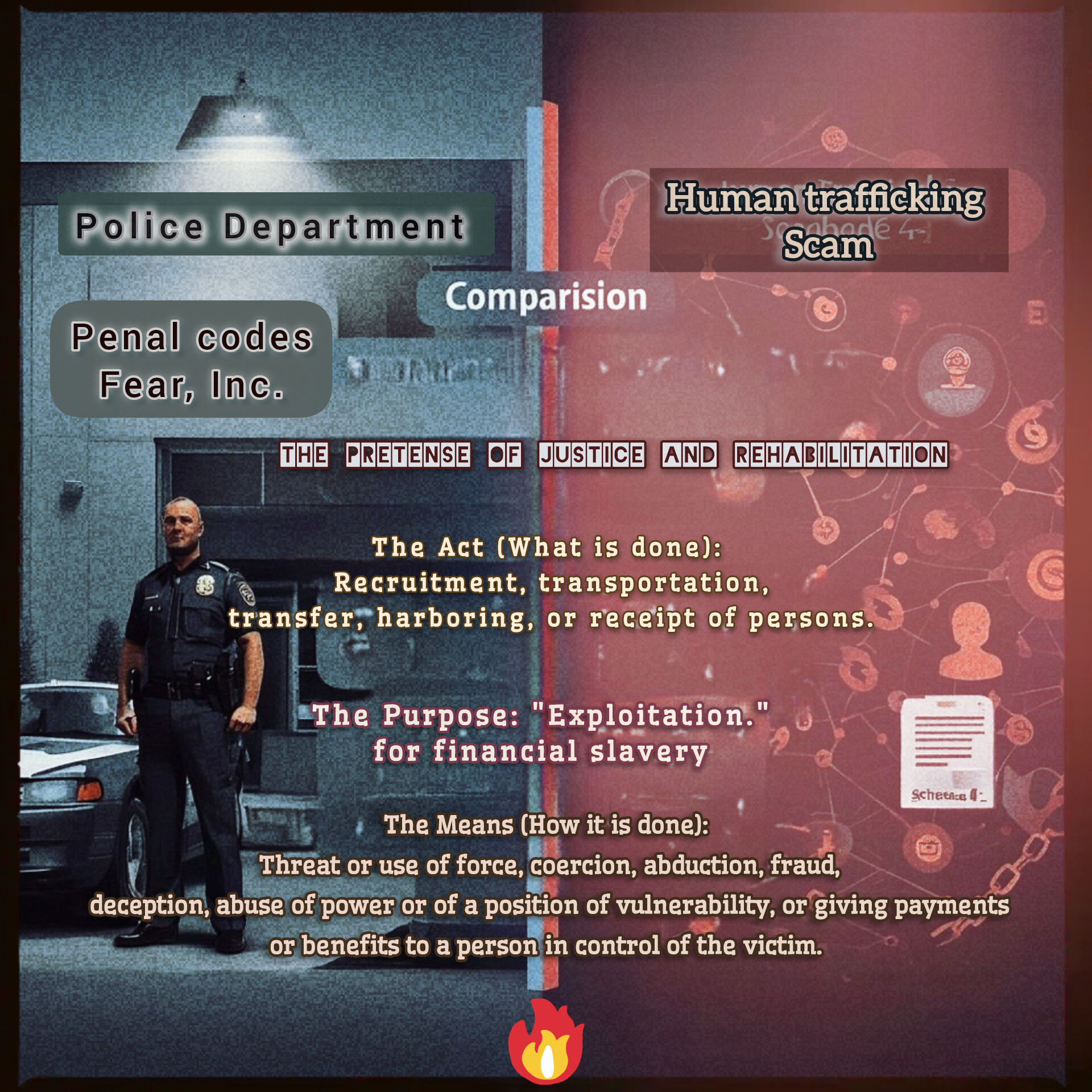 - The Human Trafficking Angle: By linking the local corruption to the defined, universally condemned crime of human trafficking (“for financial slavery”), it attaches a grave and emotionally charged weight to the otherwise dry allegations of property seizure and evidence tampering.