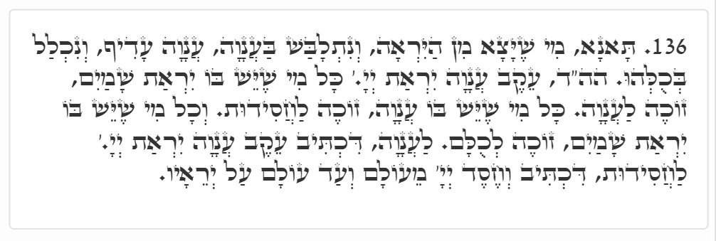 136. We have learned that whoever left the realm of awe but acquired humility, humility is better, and he has them all, as it is written: “The reward of humility and (is) the fear of Hashem” (Mishlei 22:4). All of those who have fear of heaven acquire humility, and everyone who has humility acquires piety. Everyone that has fear of heaven acquires all: humility, as it is written: “The reward of humility is the fear of Hashem,” and piety (Chesed), as it is written: “But the steadfast love (Chesed) of Hashem is from everlasting to everlasting upon those who fear Him.”